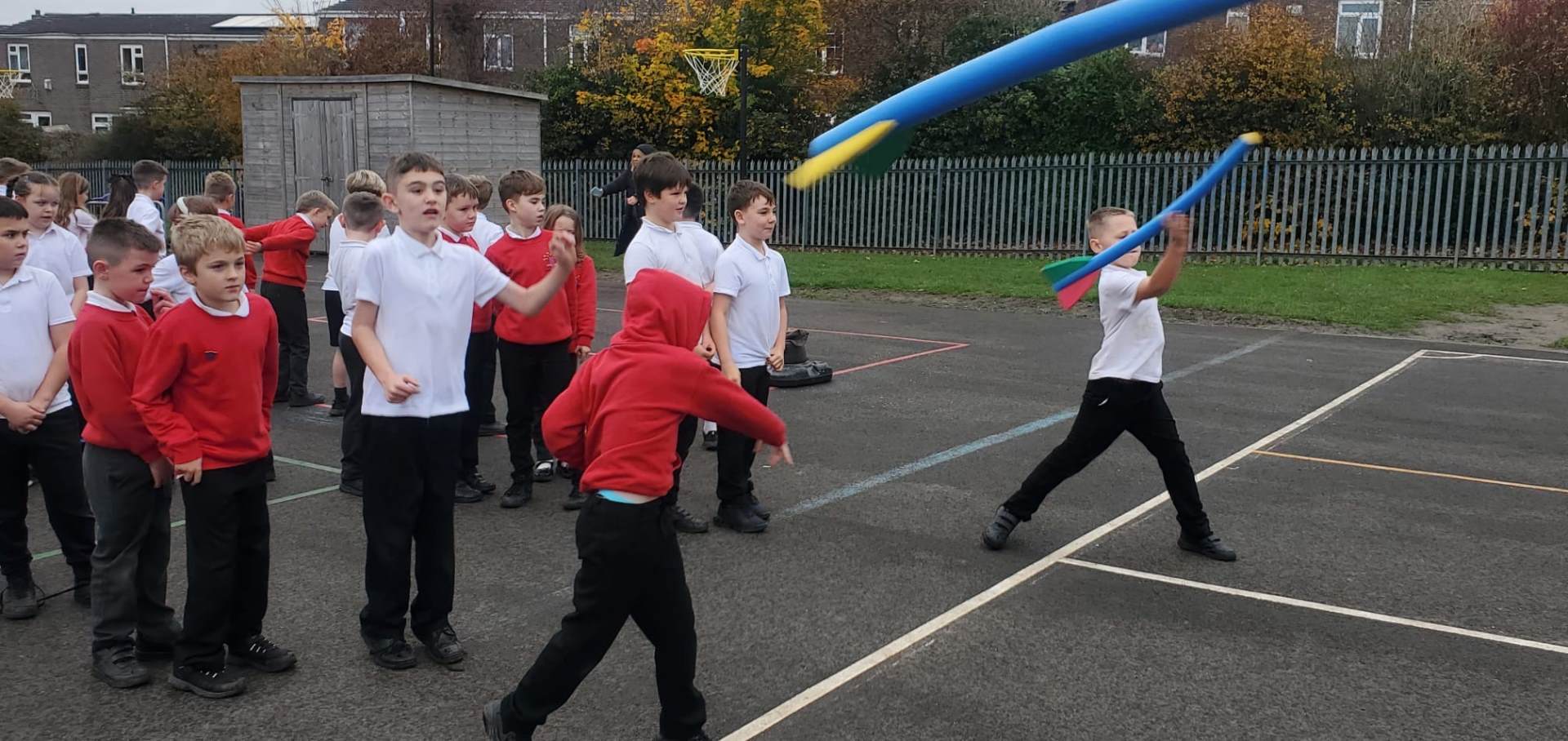 Children from Nursery to Year 6 played together in a range of outdoor activities.