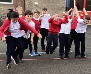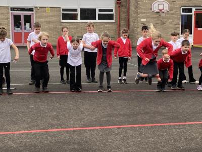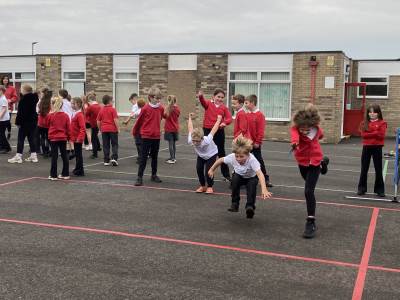 Children from Nursery to Year 6 played together in a range of outdoor activities.